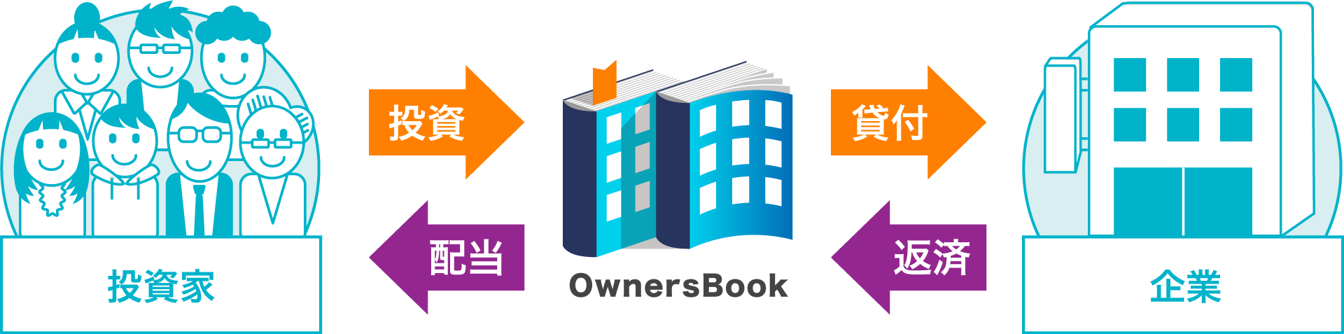投資家の皆様は融資に対する利息及び元本をOwnersBookから配当及び出資金返還として受け取ります。